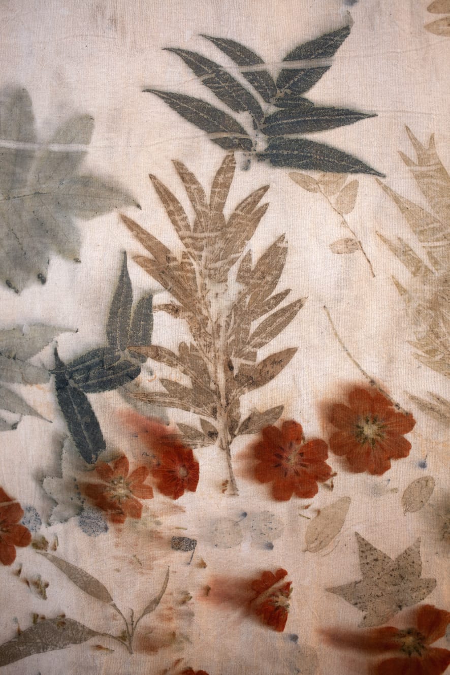 entre el textil y el vidrio. Las telas teñidas y estampadas con plantas revelan como el color